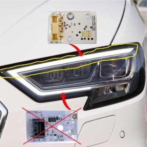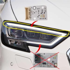 A l’aide de notre Kit de réparation de Module DRL de feux de jour à LED pour AUDI série A3, S3 vous pouvez réparer votre feux de jour par vous même à moindre coût en remplaçant simplement la carte électronique défaillante du Module DRL.